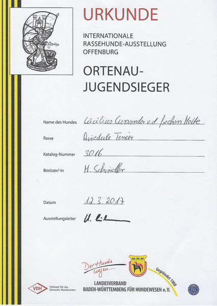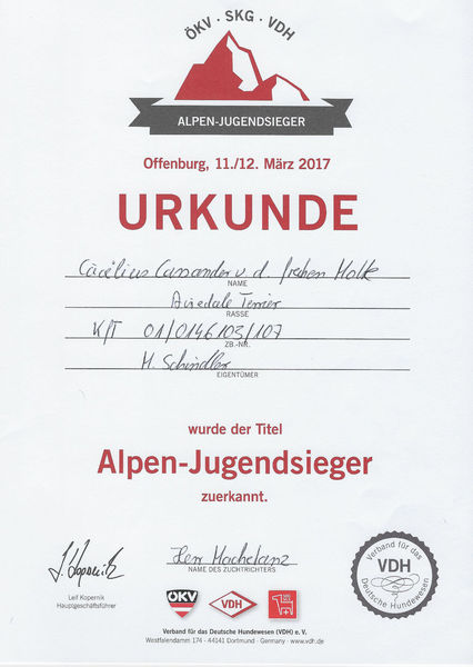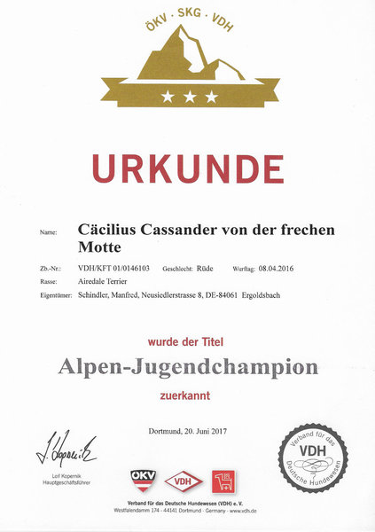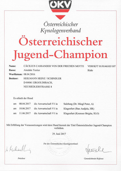 Alpenjugendchampion VDH, ÖKV, SKG