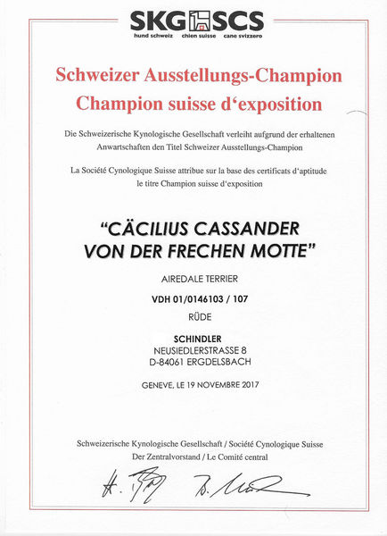 Klubsieger 2019 ( CH) Schweizer Ausstellungschampion SKG