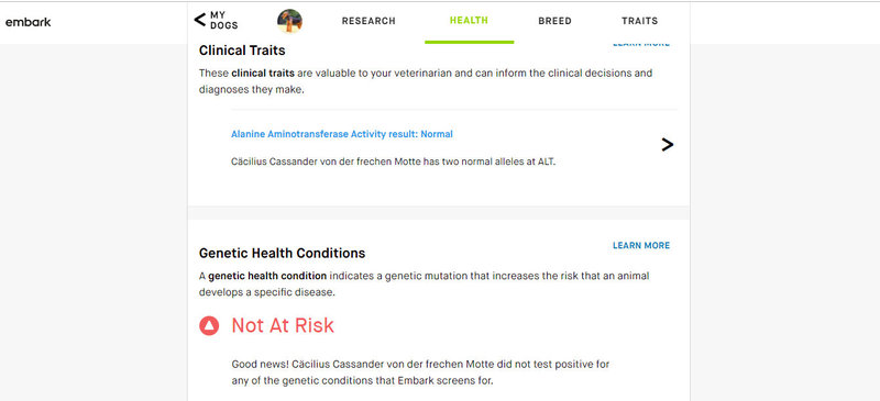 komplett durch Embark auf alle genetischen Erkrankungen