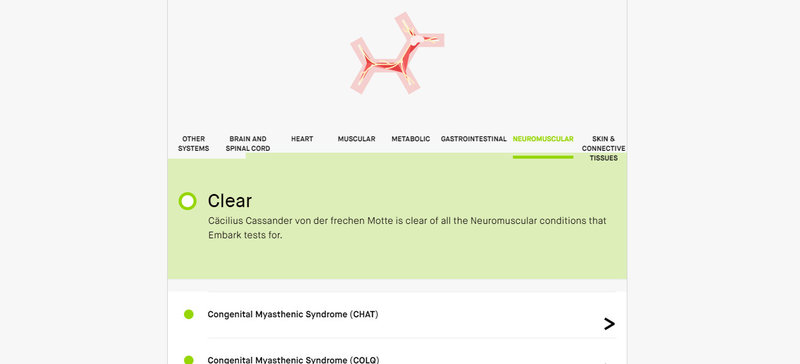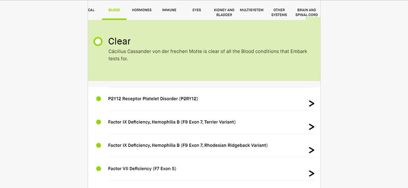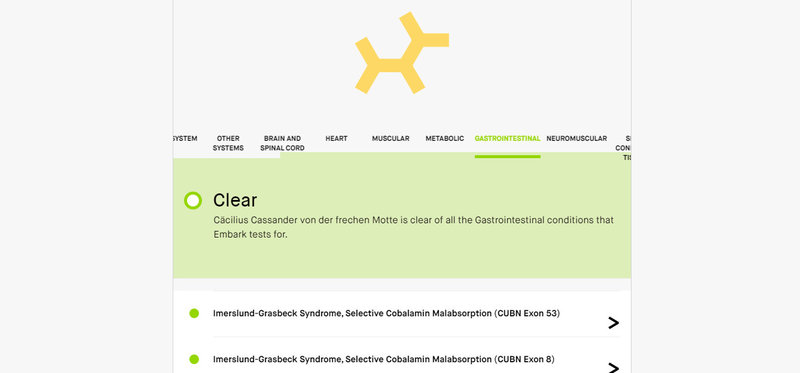 Die genetischen Tests von Embark findet Ihr am Ende der Seite. Die komplette Liste der 169 getesteteten genetischen Erkrankungen findet man auf embark.com