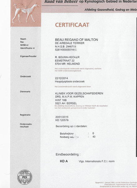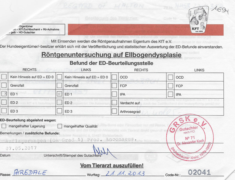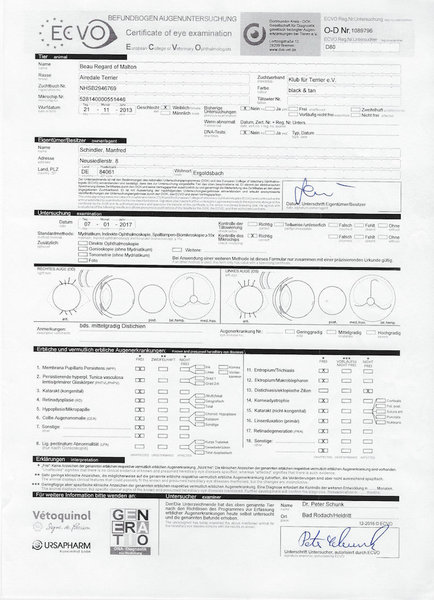 Gesundheit: HD-A, ED-1,PRA-frei ( 04 /2020 ), Organwerte (10 / 2019) ohne Befund