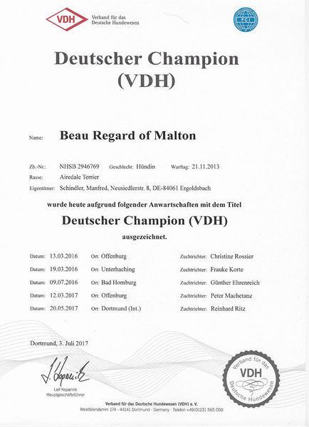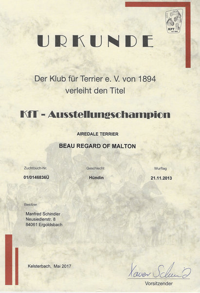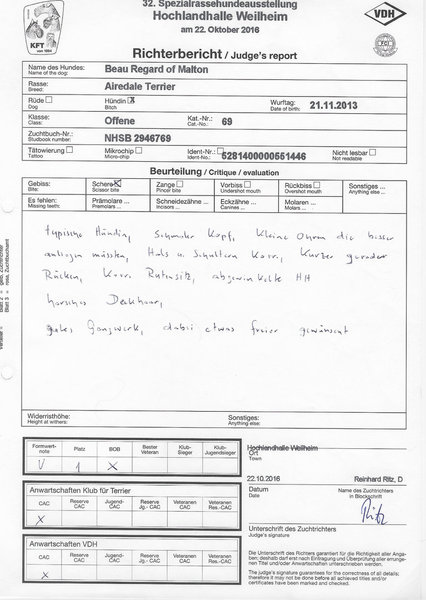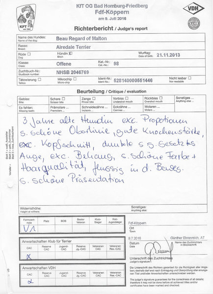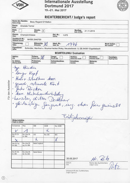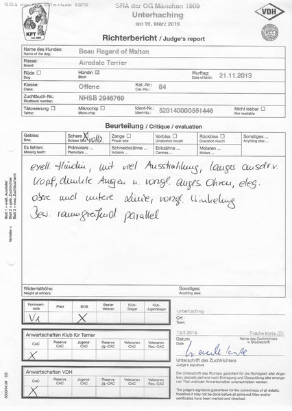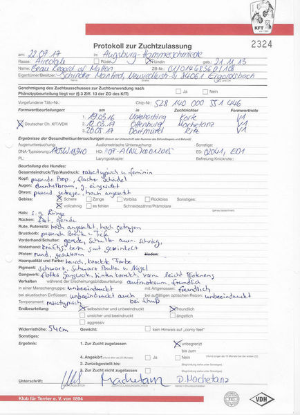 Nachdem "Lady" nun auch offiziell die ZZP des KfT absolviert hat, steht dem Versprechen, die Tochter der Weltsiegerin wenigstens einmal in die Zucht zu nehmen, nichts mehr entgegen.